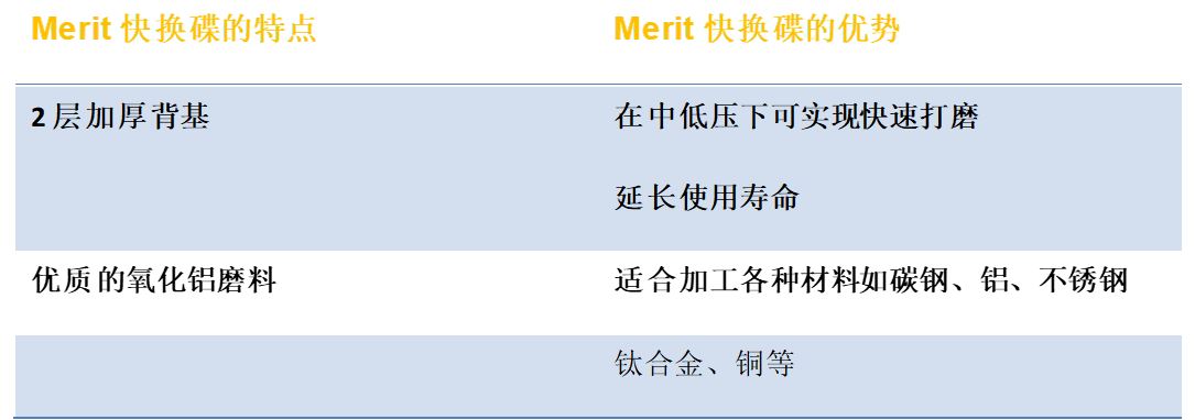 Merit快換碟 Rapidprep快換碟 產(chǎn)品粒度:P24-P320 粒度范圍 :C – VF 磨料:氧化鋁 磨料:氧化鋁 砂面顏色:棕色 顏色:棕的、紅色、綠色、藍(lán)色 背基:X-wt 產(chǎn)品形式:快換碟 產(chǎn)品形式:快換碟 |