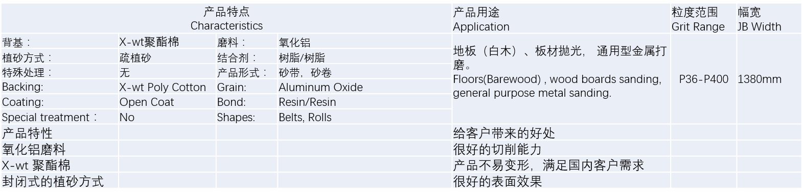 新推出的R219產(chǎn)品是針對國內(nèi)市場的實(shí)際情況而量身定做的布基通用型產(chǎn)品。該產(chǎn)品主要被加工成砂帶,廣泛應(yīng)用于木材和一般金屬的磨削,同時也可轉(zhuǎn)換成各種異型產(chǎn)品,以充分滿足廣大客戶的需求。