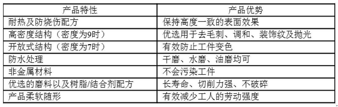 Nylon wheel 用于激光焊縫打磨。 Specification 1000 series winding wheel Size range: M – VF Density range: 6-9 Abrasive: alumina and silicon carbide Grey wheel Feature Saint-Gobain Abrasives China No. 198, Beidou Road, Minhang Economic Development Zone, Shanghai 400 888 0198 [email protected] Contact us Eshop