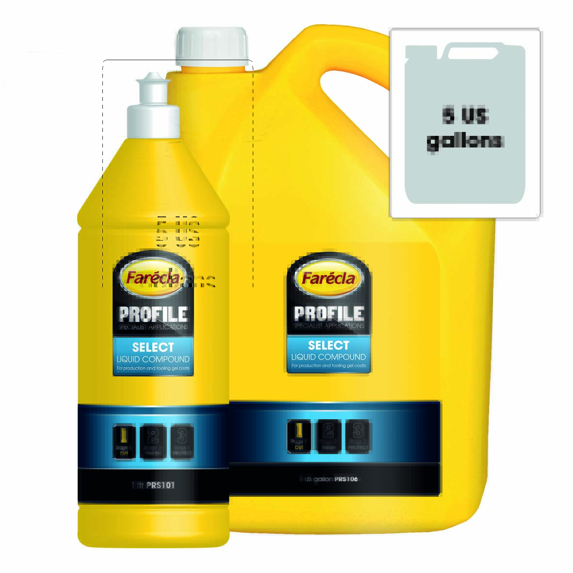 Used with a G Mop Twisted Wool Compounding Pad, Profile Select quickly removes P800 or finer sanding marks from tooling or production gel coats in a one-step process.