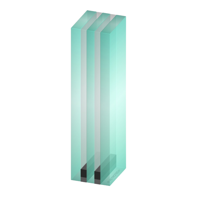 Alarm glass is a safety glass in two different variants. On the one hand we offer Stadip Alarm as laminated safety glass used to prevent burglary with visible wires laminated in the make-up. Securit Alarm is our second option available as a tempered safety glass with a visible or invisible alarm detector. When shattered it breaks into thousand little pieces and sets off an alarm dissuading intruders from entering the building.