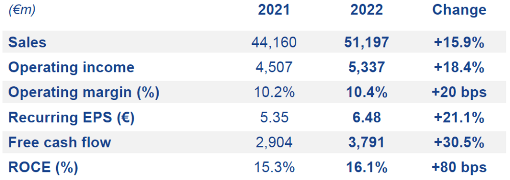 I am confident that 2023 will be a good year for Saint-Gobain. Our roadmap is clear: disciplined execution of the “Grow & Impact” strategic priorities, leveraging the strength of our operating model against the backdrop of a slowdown in new construction but good resilience in renovation. I know I can rely on the dedication and talent of our teams, who do everything possible to best serve their customers and who monitor their performance in real time within our organization by country. In this context, in 2023 we are targeting an operating margin of between 9% and 11%, in line with the objectives set out in our “Grow & Impact” plan for 2021-2025.”