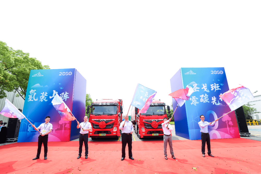 The two trucks are owned by China’s Linsen Logistics Group, one of the partners of GMI team, and will be transporting in Shanghai city only. The two parties held a launch ceremony on May 26th to celebration this sustainable initiative. From now on, the two 100% hydrogen-powered trucks will be travelling in the city with Saint-Gobain logo, Purpose and green logo of “H2” painted on them.