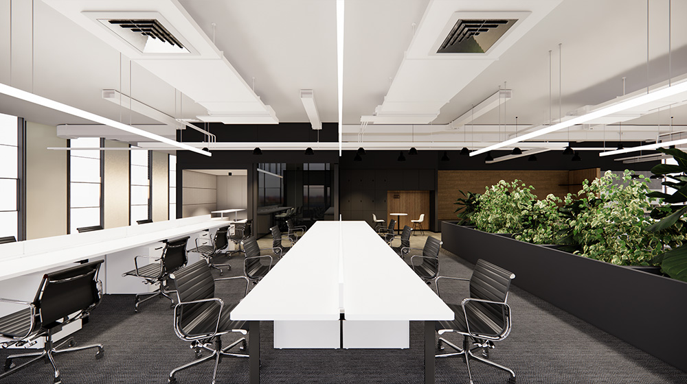 這種工作空間比較傳統(tǒng),沒有隔板或小隔間把員工分隔開,大家共享一個(gè)長的工作臺(tái),而不是一個(gè)個(gè)的獨(dú)立工位。