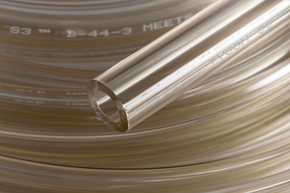 The glass-like clarity of Tygon S3? B-44-3 beverage transfer tubing allows the user to see product flow through it, so visual monitoring of flow is easy. This is particularly helpful in controlling or adjusting flow during processing.