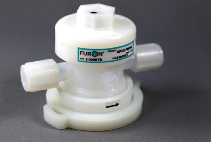 Furon UPX High Purity Valves are specifically designed for safe and reliable transfer of highly aggressive chemicals, including concentrated HF and HCI. This Furon UPX Pneumatic, 2-Way Valve feature a wetted flow path constructed from 100% virgin PFA, which assures compliance with the highest purity standards. Saint-Gobain's proprietary technology protects the valve’s working components from degradation due to chemical attacks. Additionally, Furon UPX Valves are capable of handling a wide variety of abrasive slurries and have a long track record of success in slurry applications.