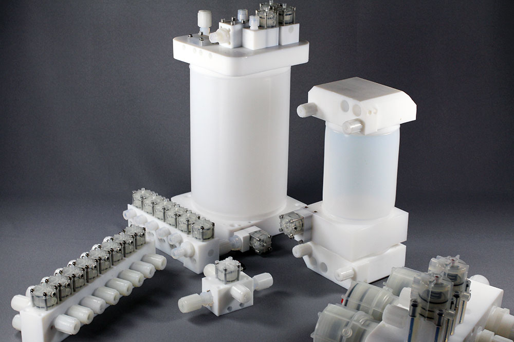 The uniform modular design of the Furon Manifolds is ideally suited to support customized manifold configurations and to provide unparalleled design flexibility in a space-saving package. Furon Manifolds feature an all injection-molded high performance valve, with visual position indication, that clearly shows at a glance whether the valve is open or closed. The manifold's body is constructed of high-purity; injection molded PFA, and was designed to provide an easy drop-in replacement for existing valves in Saint-Gobain Process Systems’ manifold system. Furon Manifolds are ideal for the semiconductor process, high purity and corrosive chemical applications that require both a high Cv factor and minimum footprint. Offered in manual or pneumatic actuated 2-way and multi-turn configurations Furon Manifolds meet a wide range of customer requirements.