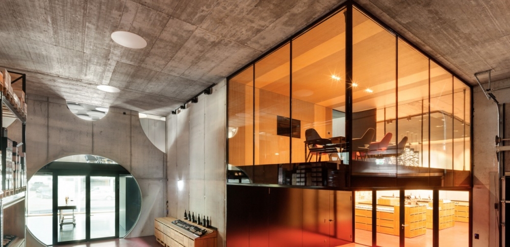The new head office of Secli Weinwelt in Buchs, Switzerland, not only combines office and production space but also comprises meeting rooms, a wine shop and event locations. A holistic business solution, which offers various possibilities to work, meet, connect and enjoy the time spent with partners, employees and clients sharing the passion of good wine.