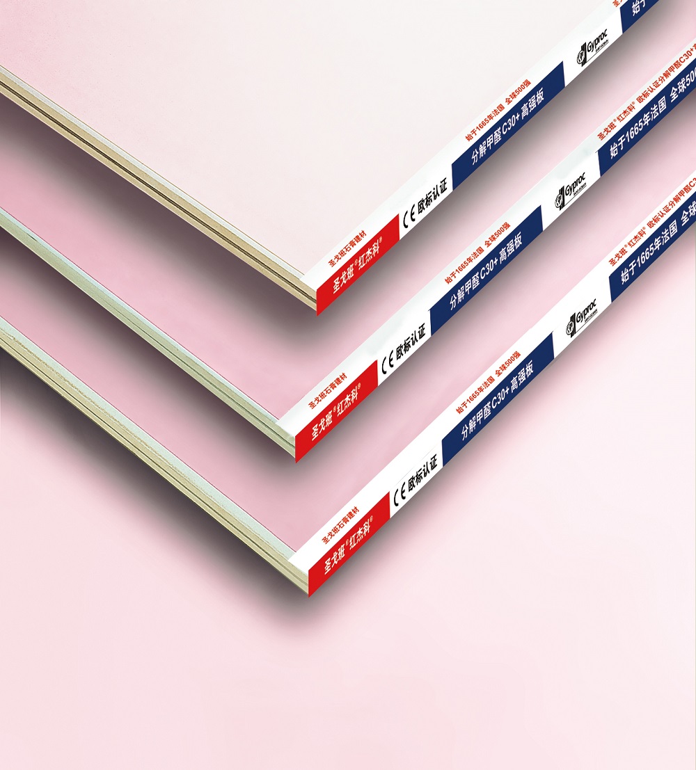 Double-core gypsum board, so that the decomposition of formaldehyde can be seen! Strong adsorption + decomposition layer: blue colored layer added adsorption factor, can actively adsorb and decompose formaldehyde; decomposition layer: decomposition of formaldehyde additive can decompose formaldehyde into non-toxic and harmless inert carbohydrate, and remain in the board;