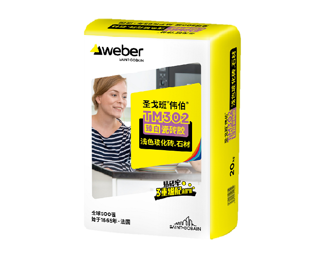 圣戈班?偉伯? TM302臻白瓷磚膠是水泥基聚合物改性瓷磚粘結(jié)產(chǎn)品,可滿足淺色?;u、石材、馬賽克的粘貼,采用圣戈班?偉伯?三重級配配方技術(shù),具有高保水、高滿漿、高強度、耐溫耐凍、不透色等特點,通過法國室內(nèi)環(huán)境檢測A+認證,環(huán)保升級,全面有效的保護家居裝飾和家庭健康.