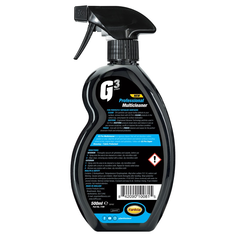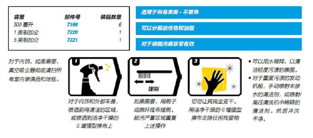 G3 Pro 多功能清潔劑是一款嚴(yán)謹(jǐn)且安全的清潔劑,適用于所有柔軟和堅(jiān)硬的表面,包括輪轂拱罩