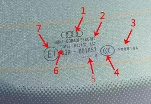 汽車玻璃代碼由于平時(shí)我們并不注意,因此對(duì)于那些眼花繚亂的代碼也是一頭霧水,那么今天,小圣就給大家介紹介紹汽車玻璃上的代碼,以后汽車玻璃更換時(shí)就不會(huì)被騙啦,那么我們就拿下面這款玻璃來舉例吧: