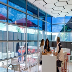 美國(guó)亞特蘭大市備受贊譽(yù)的Southface環(huán)保辦公室安裝了SageGlass?,向世人展示了動(dòng)態(tài)調(diào)光玻璃在更好地利用日光的同時(shí)能夠阻擋陽光的不良作用如眩光、多余的熱量等,還能保留室內(nèi)與室外的聯(lián)系。