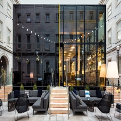 費(fèi)城標(biāo)志性建筑金梅爾表演藝術(shù)中心利用SageGlass?動態(tài)調(diào)光玻璃將一度幾近廢棄的屋頂花園露臺改造成為舒適宜人的玻璃封閉式社交空間。