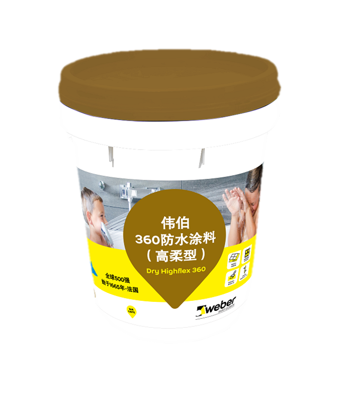 偉伯 360 防水涂料(高柔型)是一種雙組份,聚合物乳液改性水泥基防水材料。由復合聚合物乳液、水泥及配骨料,精選聚合物添加劑組成?,F(xiàn)場攪拌刷涂施工后,形成堅韌的柔性防水膜,與基層牢固組合,具有高度的柔韌性和超強的粘結力,高效的抗?jié)B防水防潮,更具備卓越的防霉耐堿功能,有效保護裝飾面。
