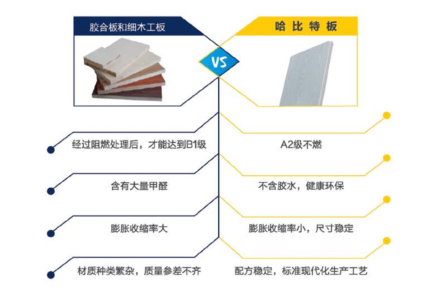 哈比特板不僅具有木工板的強度和特性,而且還避免了木工板的諸多缺陷(含甲醛、防火差、龜裂、含水率和膨脹收縮率高,容易分層等),因此是細木工板、膠合板的理想升級換代產(chǎn)品。